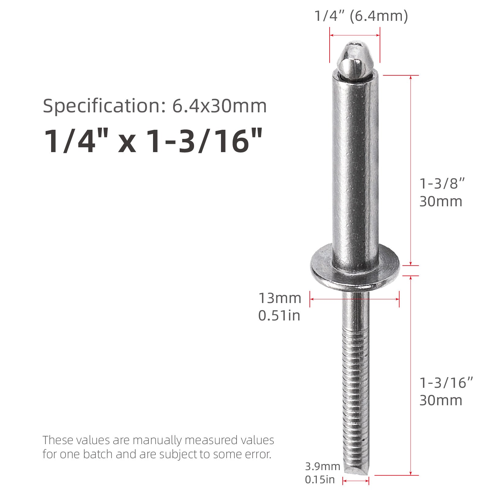 Extra Long Blind Rivets 1/4" (6.4mm) Diameter,Stainless Steel